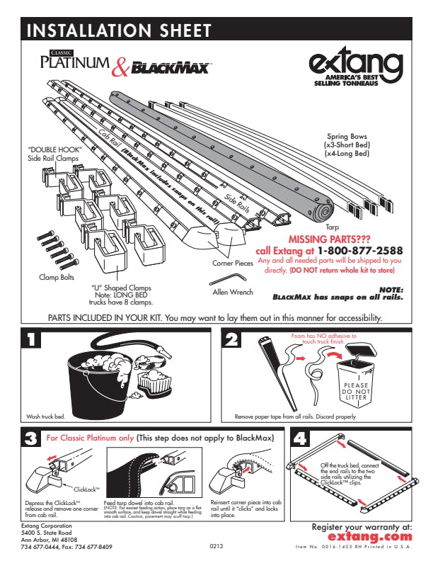 The ultimate quality choice when nothing but premium metal components will do. The Extang Classic Platinum tonneau cover is a snap-based truck bed cover that offers fast and easy access to the truck bed and cargo by simply dropping the tailgate or by unsnapping and rolling up the tarp. Extang exclusive and patented all-climate tarp design is fully adjustable for easy use in cold weather. Our patented, quick-release "ClickLock(TM)" corner system allows you to quickly roll the cover open and get it out of your way. Extang "TuffSnaps" will not break. Field tested and proven, the Extang Classic Platinum truck bed cover installs within minutes!